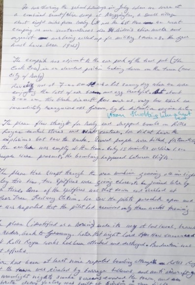 In my research on the land army, I decided to conflate an incident I read about and a memory from my Dad that he has related on a number of occasions. I asked him to write out everything he could remember about it, which he did and I asked some follow up questions, part of which will make it into the manuscript.