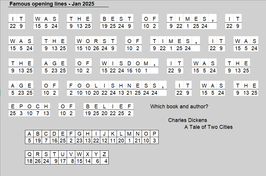December 2024 Puzzles – Famous First Lines
